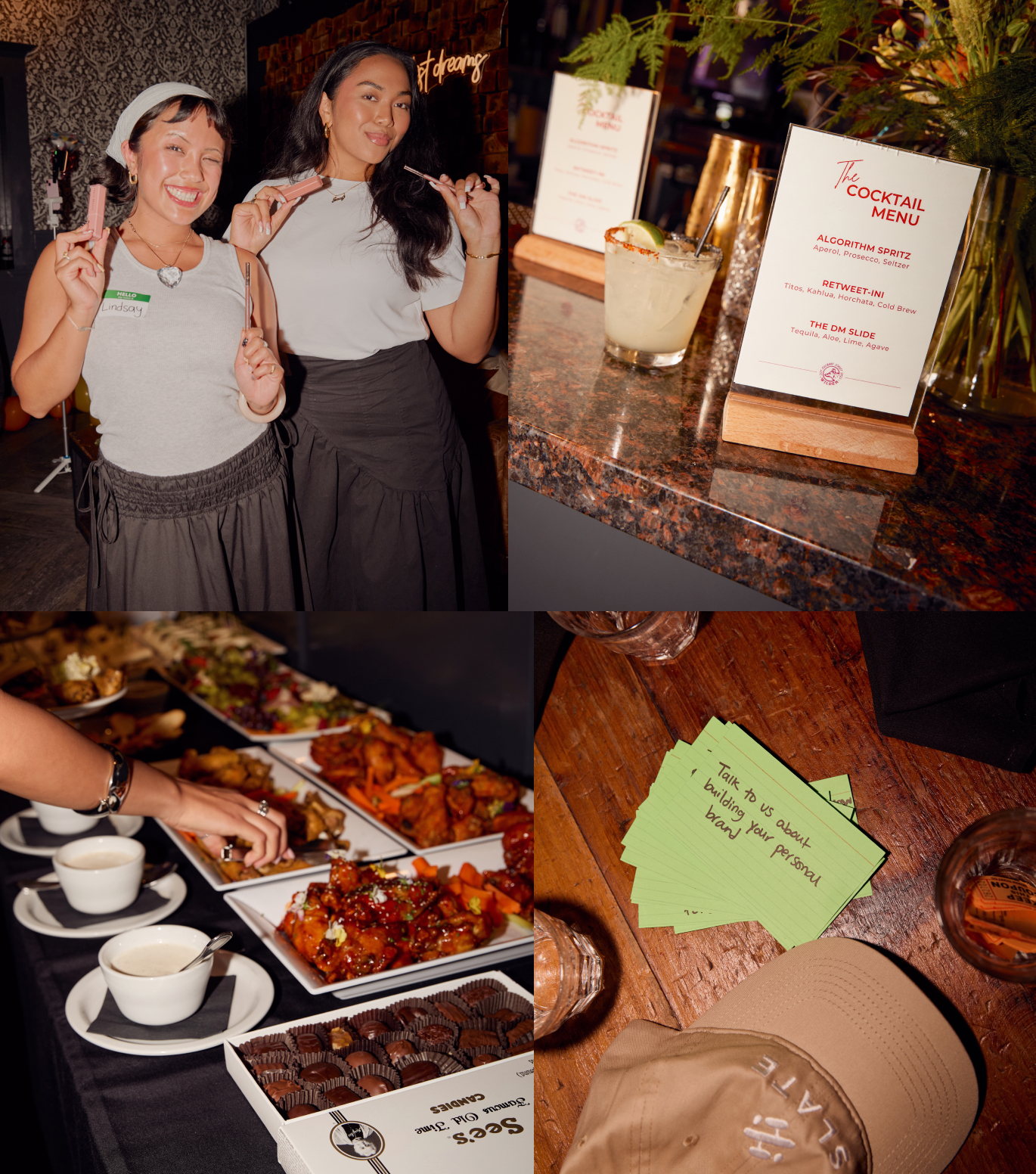From curated guestlists to thoughtful experiences, every detail is designed to maximize connections, celebrate impact, decrease screen time and establish community with our fav social media pros in a fun (not stale) way.